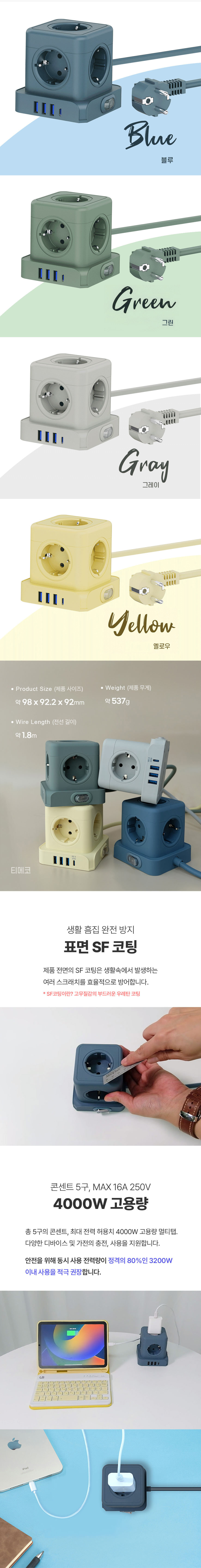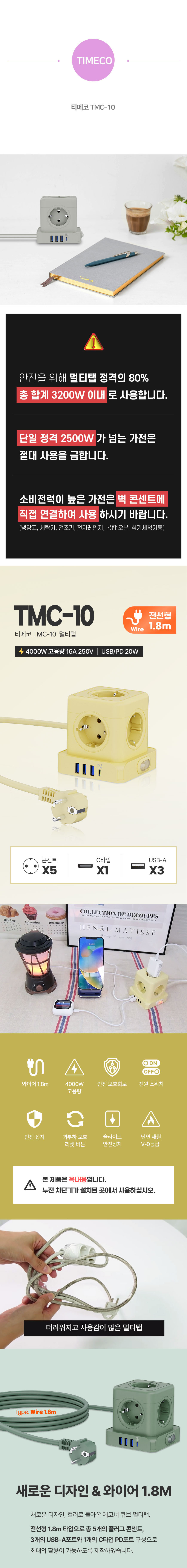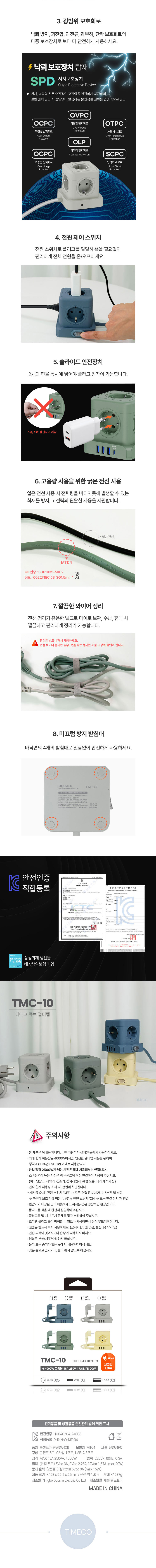 Ƽ¸ÞÄÚ TMC-10 20W °í¼ÓÃæÀü 5±¸ ¸ÖƼÅÇ Å¥ºê µðÀÚÀÎ 4000W °í¿ë·® CŸÀÔ USB 4Æ÷Æ®
